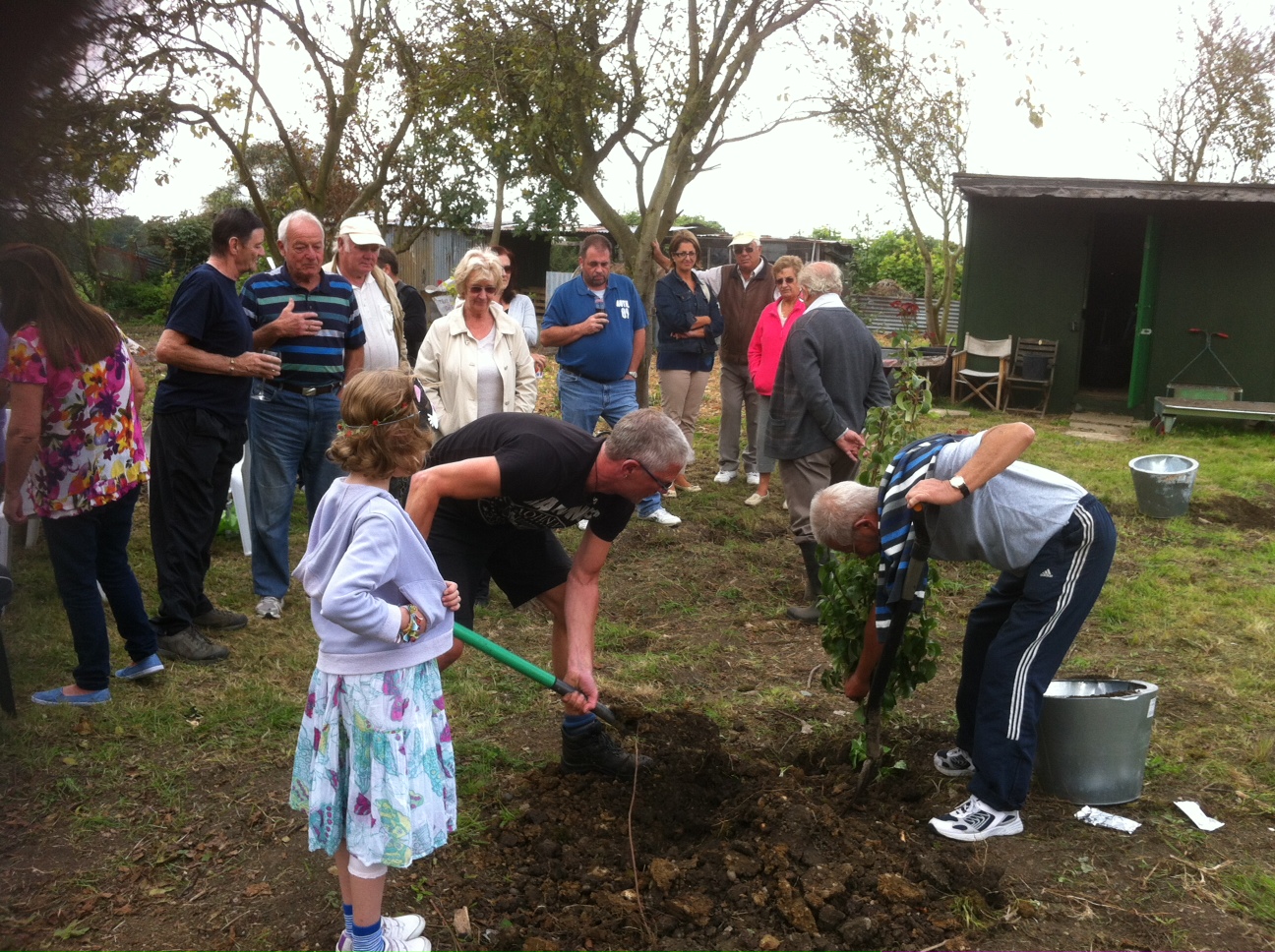 We are very pleased to report that the memorial event held on Saturday 13 September was a great success.  There was a good turnout of society members and friends who gathered in the orchard to celebrate the lives of Mick Cawley’s wife Gina and Simon Thorne’s partner Caroline, who both passed away recently and will be much missed by their families, friends and fellow plot-holders.  Trees were planted in their memory.